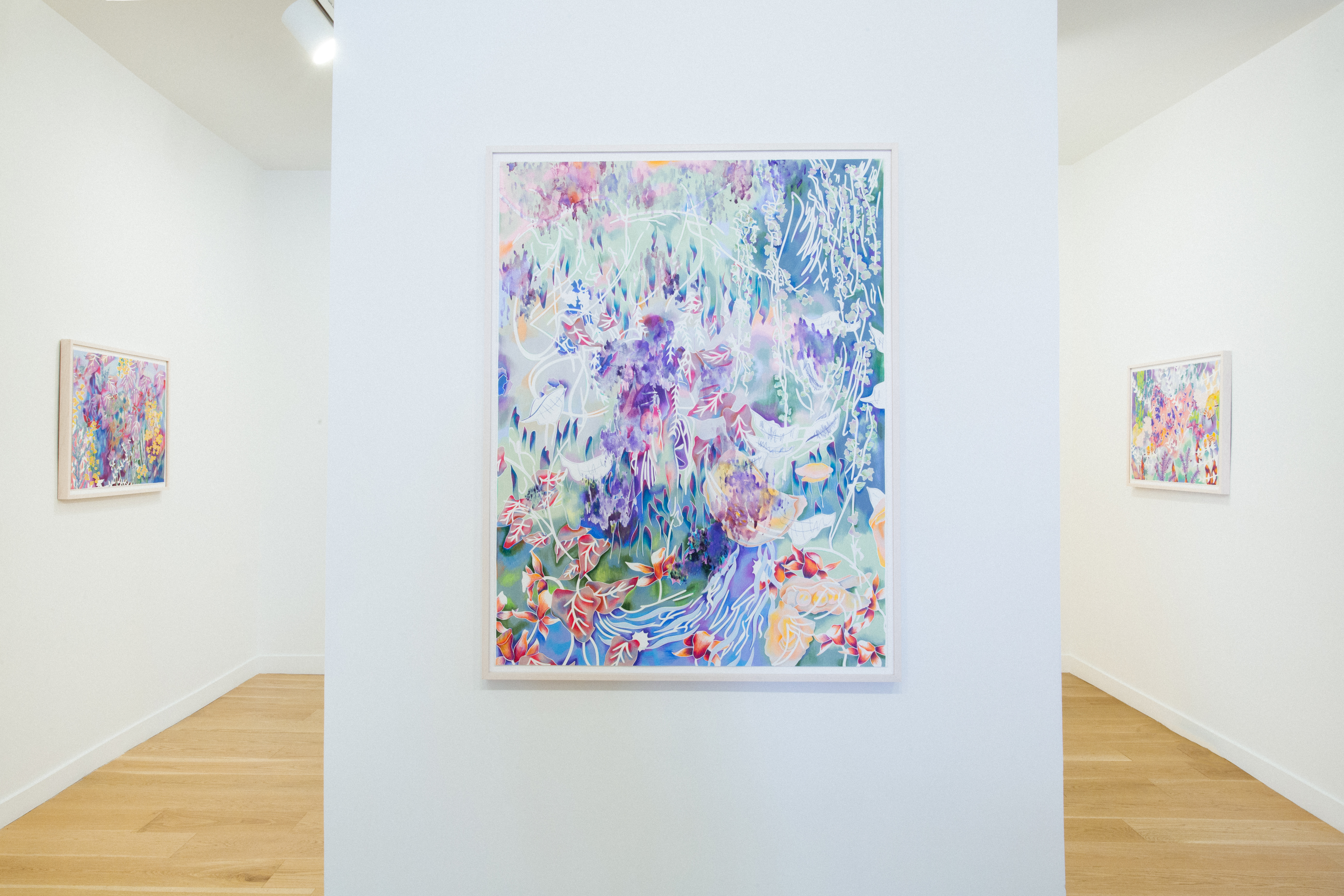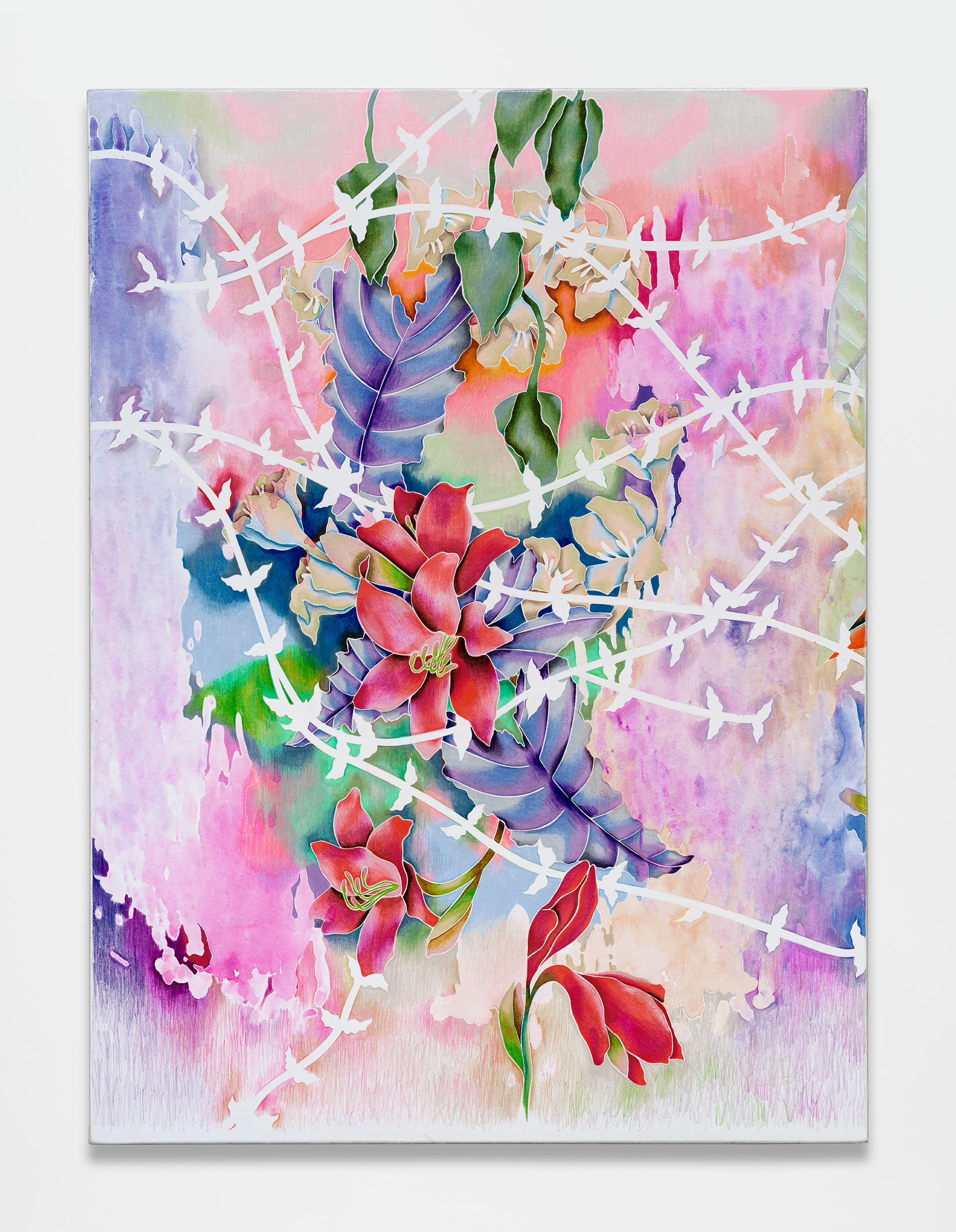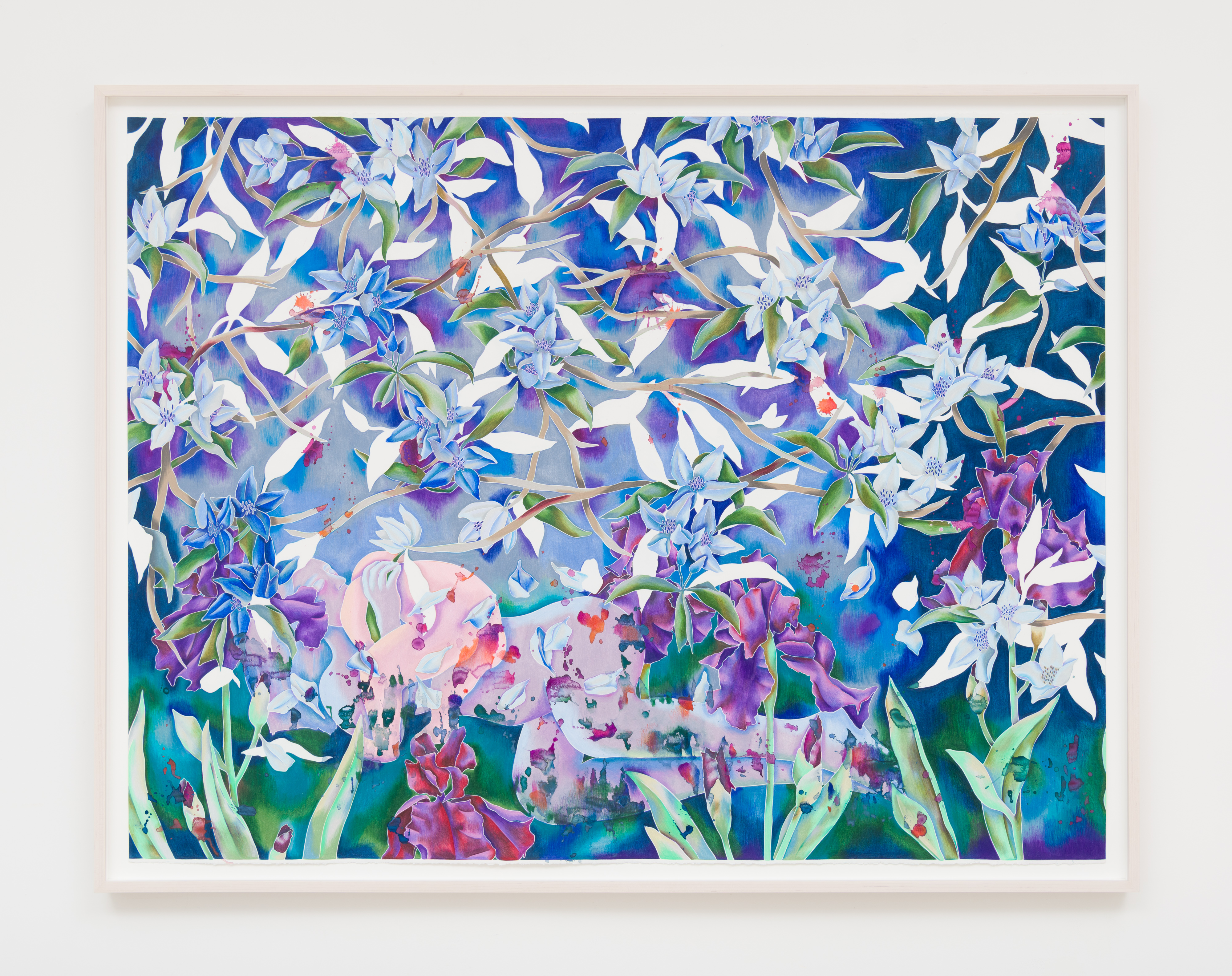 "Night Blooming Jasmine," 2025. Watercolor and colored pencil on paper, framed. 41 x 53 IN