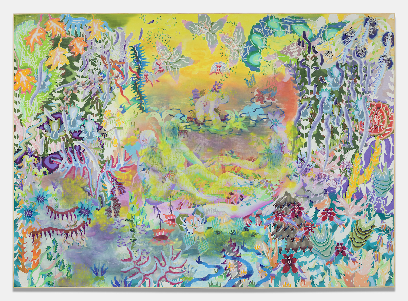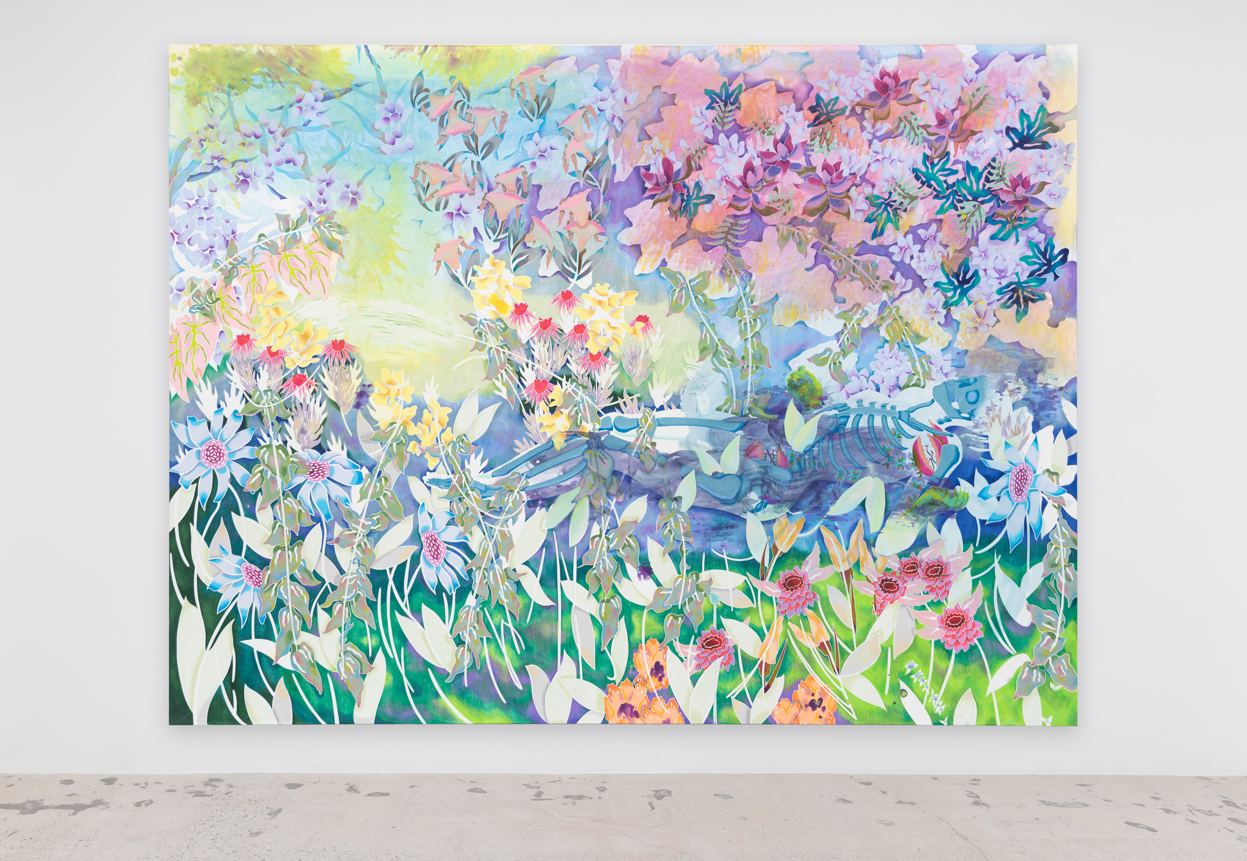 "I would give you some violets," 2022. Watercolor and colored pencil on prepared linen over panel. 72 x 96 IN